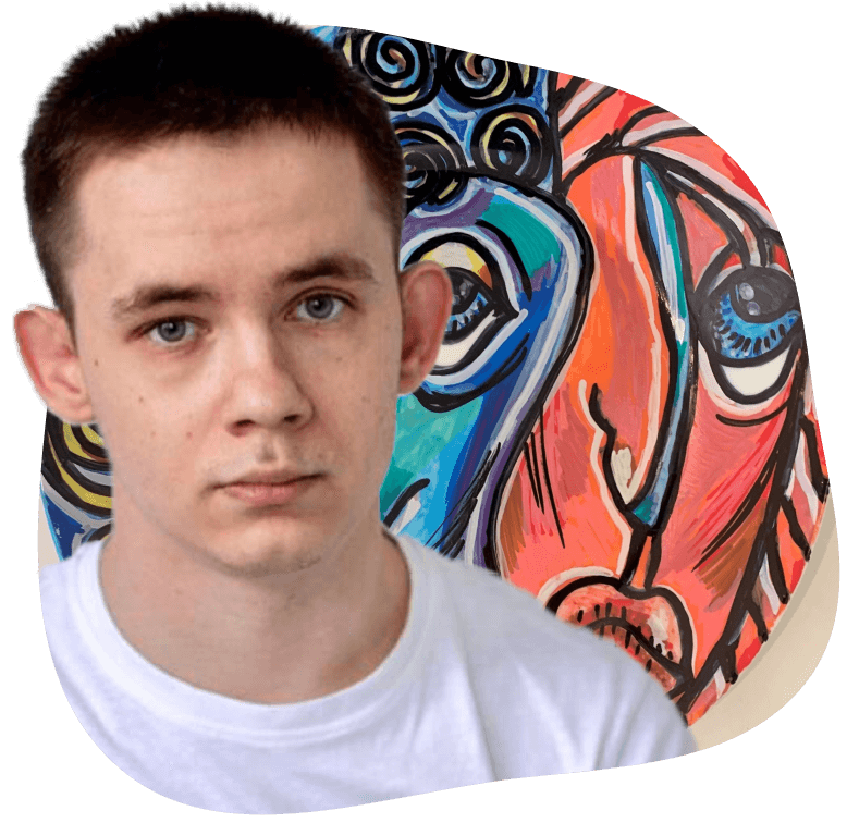 Despite being diagnosed with Little’s disease, which limited the movement of his right hand, he has become an artist capable of breathing life into canvases, plates, clothing and literally anything that falls into his hands. His left hand, as if controlled by nature, creates lines and shapes that mesmerize the viewer.